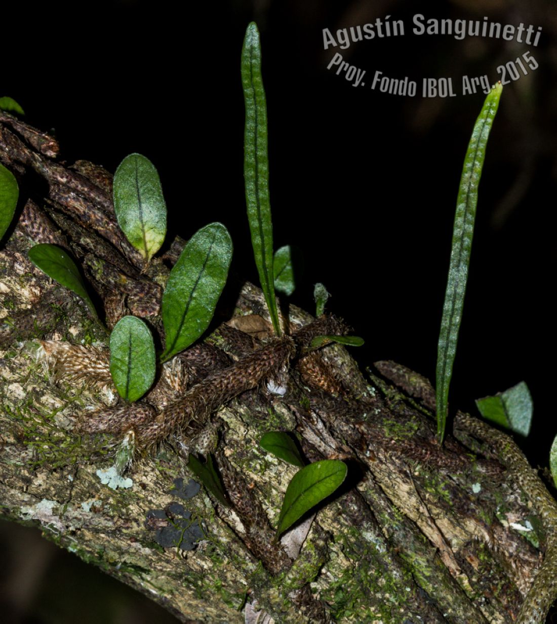 Epífitas, raramente rupícolas. Rizomas cilíndricos a aplanados dorsiventralmente, de 2-4 mm de diámetro, largamente rastreros, con numerosas ramificaciones laterales, con escamas imbricadas, basipeltadas, largamente ovadas, de 5-10 mm de largo, base redondeada, ápice largamente filiforme, el margen paucidentado, castaño, de borde blanquecino. Frondes subtrimórficas, con dos tipos de frondes estériles; pecíolos articulados a un filopodio globoso, ausentes o breves, no surcados, estramíneos, con escamas en la base, similares a las rizomáticas; láminas estériles de dos tipos, unas ovadas a ovado-lanceoladas y otras oblongas, de 1,5-6 × 1-1,8 cm, base redondeada o cordiforme, ápice obtuso o redondeado, margen entero, levemente sinuoso; láminas fértiles lineares a linear-oblongas, de 3-13 × 0,3-0,7 cm, base decurrente, atenuada a cuneada, ápice redondeado, margen entero a levemente sinuoso, papiráceas, glabrescentes, cara abaxial con escamas filiformes, de 2-3 mm de largo, tenues, dispersas sobre la costa; venación de las láminas estériles reticulada, generalmente las aréolas adyacentes a la costa con una venilla libre inclusa y hacia el margen, con aréolas menores sin venillas internas, raramente las venas son libres; venación de las láminas fértiles representada por aréolas costales fértiles, continuando hacia el margen venillas libres. Soros circulares, sobre venillas libres o en el punto de unión de dos venillas libres o anastomosadas, dispuestos en una hilera entre la costa y el margen, levemente impresos sobre la cara adaxial. Esporas verrucosas, de 55-64 µm de diámetro ecuatorial.