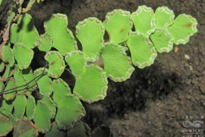 Plantas terrestres. Rizomas cortamente rastreros, de 2-2,5 mm de diámetro, con porción estoloniforme y escamas rizomáticas deltoideo-lanceoladas, castañas, de margen entero. Frondes de 25-55 cm de largo; pecíolos ca. 2 mm de diámetro, tan largos como la lámina; láminas 2-3 pinnadas, de 14-27 cm de largo, el contorno deltoideo a triangular; raquis rectos; peciólulos de 0,6-2 mm de largo; pínnulas de 0,7-1,1 × 0,7-1,2 cm, de contorno flabelado y base cuneado-simétrica o asimétrica, truncada o cordada, glabras o con pelos glandulares, el margen de las pínnulas estériles recto a crenado. Pseudoindusios en número de 5 a 10 por pínnula, de contorno orbicular o reniforme y margen basal deprimido. Soros 1 por pseudoindusio. Esporas subtriangulares, amarillas, de 43 × 40 µm, con perisporio granular; gránulos aislados o unidos formando arrugas y glomérulos.