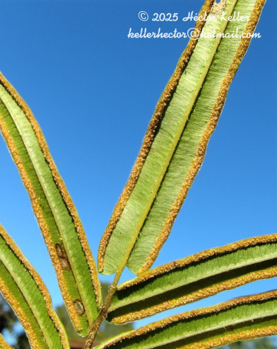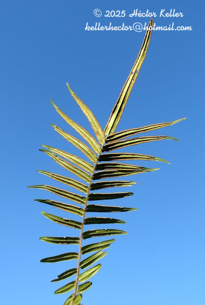 Rizomas cortos, decumbentes a rectos, de 0,5-2 cm de diámetro, con escamas lanceolado-filiformes, castaño claras, de 0,3-0,5 mm. Frondes monomorfas, cespitosas, erectas a péndulas, de 10-50(-80) cm de largo; pecíolos castaño-claros, escamosos, escamas castañas; láminas oval-elípticas, 1- pinnadas; pinnas 10-30(-40) pares, pinnas sésiles, oblícuas en relación al raquis, enteras, lineares, de 5-10 × 0,5-1,3 cm, pinna apical de mayor longitud que las restantes, de 9-14 × 0,5-1 cm; pinnas cartáceas, base ligeramente auriculada, ápice agudo, margen aserrado, raquis y costas esparcidamente escamosas; venación simple a furcada. Cenosoros interrumpidos en los ápices de las pinnas, pseudoindusio blanquecino, entero. Esporas reticulado-tuberculadas, de 30- 60 µm de diámetro ecuatorial.