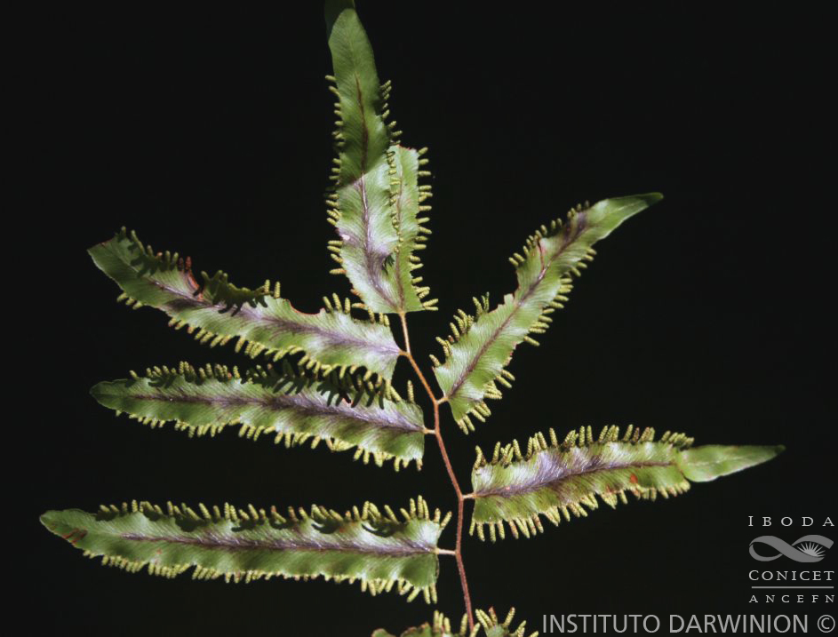 Rizomas rastreros de 3-4 mm de diámetro, con pelos negros. Frondes bipinnadas; raquis volubles, de 1-2 mm de ancho, con algunos pelos amarillentos; pínnulas cortamente pecioluladas, lanceoladas, de margen aserrado, levemente pilosas, de 3-10 × 0,5-1,5 cm, con venas libres, raramente con 1 ó 2 aurículas en la base; pínnulas fértiles levemente pilosas. Esporangios 5-12 pares, distribuidos en los lóbulos marginales, cubiertos por una estructura laminar. Esporas verrucoso-tuberculadas.