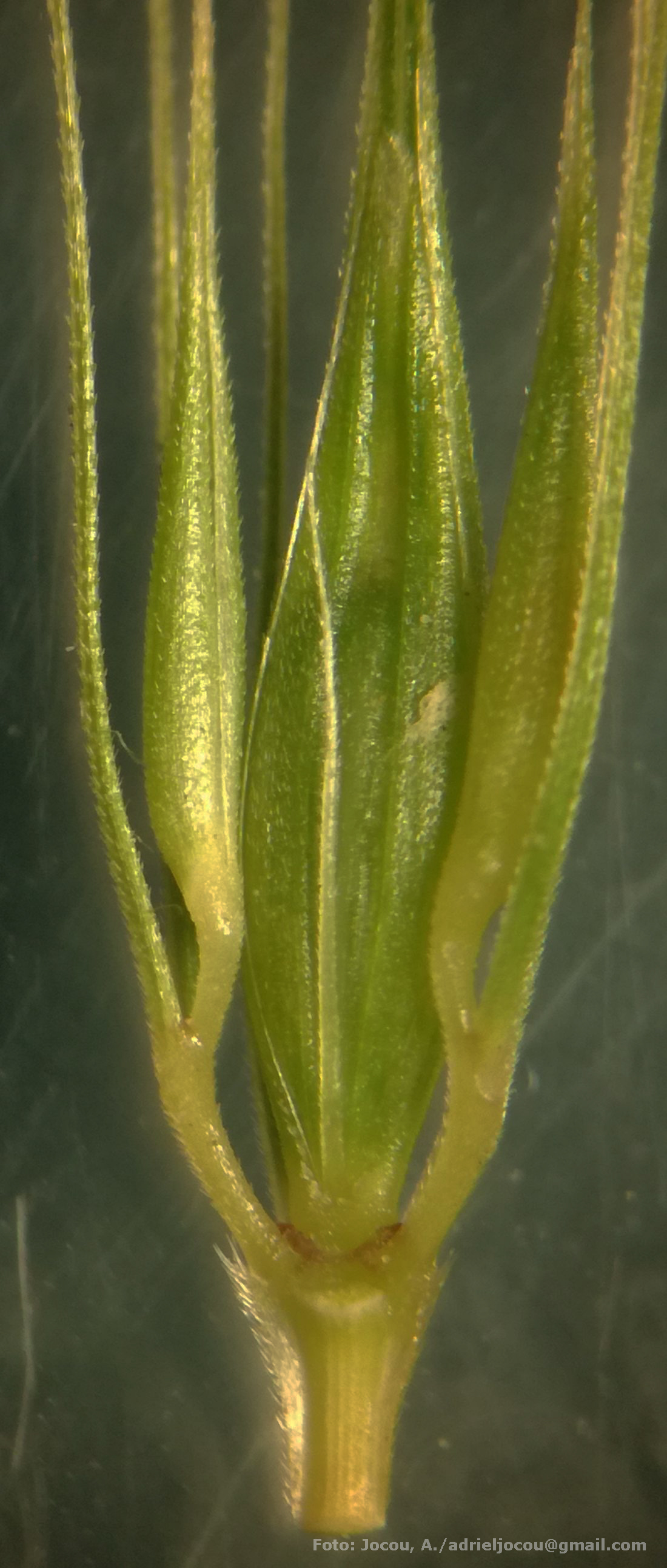 Plantas perennes, a menudo de vida corta, cespitosas, con cañas de 30-60(-75) cm de alto, rígidas, erectas, raro geniculadas; nudos glabros; lígulas de 0,6-1,6 mm de largo, truncadas, con borde dentado; láminas de 15-155 x 2-4 mm, planas a ocasionalmente involutas en los márgenes, escabrosas y con largos pelos entremezclados; glaucas; aurículas ausentes. Inflorescencia una espiga de (40-)60-95(-105) x 4-6 mm, exerta, pajiza a verdosa, en ocasiones madurando dentro de las hojas superiores. Espiguilla central sésil; glumas de (12,5-)15-20(-22) mm de largo, setáceas, abiertas a la madurez, pubescentes a escabrosas en la parte superior; cuerpo de la lemma de 6,5-7,5(-9,5) mm de largo, escabrosa, con arista de (-8)10-15(-18) mm de largo; pálea de 6,5-7 mm de largo, ralamente pilosa; lodículas de 0,8 mm de largo con ápice ciliado; anteras de 1,5-2 mm de largo, amarillas; prolongación de la raquilla de (2,7-)3,1- 4,5(-5,1) mm de largo. Espiguillas laterales rudimentarias, estériles u ocasionalmente estaminadas, pedicelos de 1-1,2 mm de largo; glumas de (12-)14,5-19,3(21) mm de largo, setáceas, abiertas a la madurez, pubescentes.