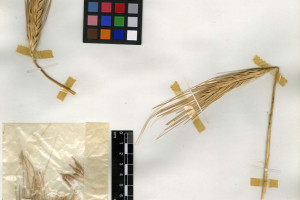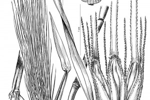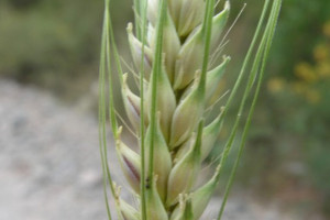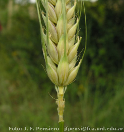 Plantas anuales, débilmente cespitosas, con cañas hasta de 100(-150) cm de alto, erectas o algo geniculadas en la base; nudos glabros; lígulas de 1-2 mm de largo; láminas hasta de 45 cm de largo x 10-20 mm de ancho, planas, glabras o escabrosas; aurículas largas, hasta de 10 mm de largo, falcadas, a menudo rodeando completamente las cañas. Inflorescencia una espiga de 50-300 mm, verdosa a purpúrea o negruzca; raquis rígido. Espiguilla central sésil; glumas de 10-30 mm de largo, lanceoladas, aplanadas, glabras o pubescentes; cuerpo de la lemma de 8- 12 mm de largo, más de 3 mm de ancho, glabro o escabroso, con arista de 30-180 mm de largo, algunas formas con aristas trifurcadas; anteras de 6-10 mm de largo, amarillas; prolongación de la raquilla corta. Espiguillas laterales tan desarrolladas como la central, estaminadas o estériles, usualmente sésiles, las formas fértiles con pedicelos hasta de 3 mm de largo; glumas de 10-20 mm de largo, más o menos aplanadas; lemmas sin aristas o con aristas de 50-150 mm de largo.