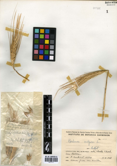 Originaria de Asia y África. Especie con numerosos cultivares y formas silvestres, frecuentemente escapadas de cultivos. En Patagonia se cultivan las llamadas cebadas forrajeras, la cebada desnuda o con granos desnudos y la cebada cervecera para maltería.