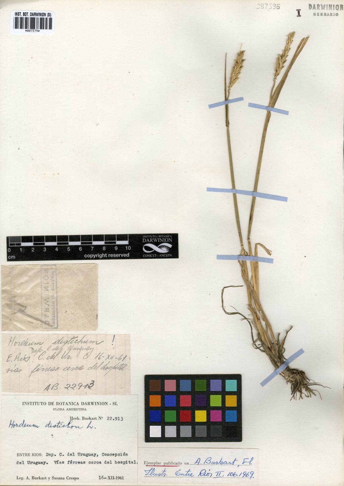 Originaria de Asia y África. Especie con numerosos cultivares y formas silvestres, frecuentemente escapadas de cultivos. En Patagonia se cultivan las llamadas cebadas forrajeras, la cebada desnuda o con granos desnudos y la cebada cervecera para maltería.