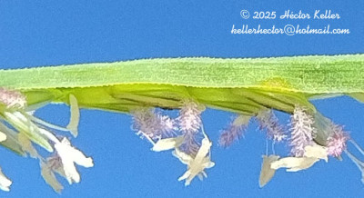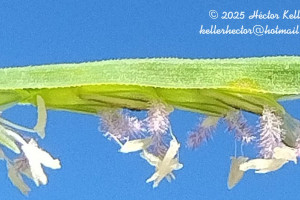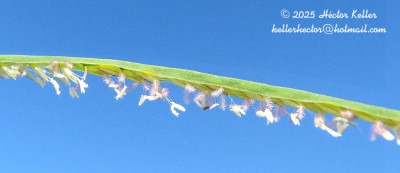 Observaciones: Miembro del grupo Dissecta, es afín a Paspalum longicuspe Nash, especie que habita en América del Norte; se distingue de ésta por poseer espiguillas menores, de 1,2-2 mm de largo, imbricadas, dispuestas en 2 series a lo largo del raquis de los racimos.