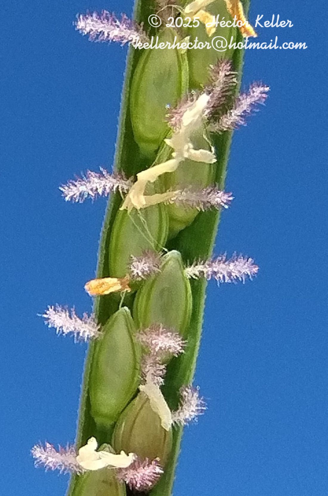 Observaciones: Miembro del grupo Dissecta, es afín a Paspalum longicuspe Nash, especie que habita en América del Norte; se distingue de ésta por poseer espiguillas menores, de 1,2-2 mm de largo, imbricadas, dispuestas en 2 series a lo largo del raquis de los racimos.