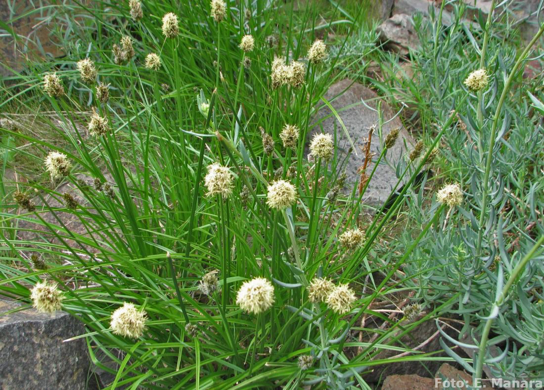 Rizoma leñoso. Tallo de 15-30 cm de alto, triquetro, escabroso en lo alto. Hojas más cortas que el tallo, de 3-4 mm de ancho. Espiguillas numerosas, andróginas, dispuestas en espiga de 3 cm, subdensa, generalmente ebracteada; glumas ovales de color herrumbroso de bordes hialinos anchos. Utrículos poco más largos, ovales, plano-convexos, lisos, lustrosos, paucinervados en el dorso, de base esponjosa, brevemente estipitados, de bordes engrosados, gradualmente atenuados en rostro mediocre brevemente bidentado, estigmas 2.
