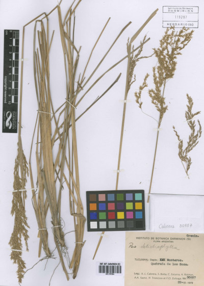 Observaciones: Poa dolichophylla lleva el nombre de un complejo taxonómico conformado por tres especies dioicas afines (Giussani, 2000), que crecen en las sierras pampeanas, región noroccidental (P. dolichophylla), Córdoba y San Luis (P. stuckertii) y sierras de la provincia de Buenos Aires (P. iridifolia). Poa dolichophylla se distingue de las otras por su gracilidad, su aspecto nutante cuando crece sobre pendientes, y menor ancho de láminas.