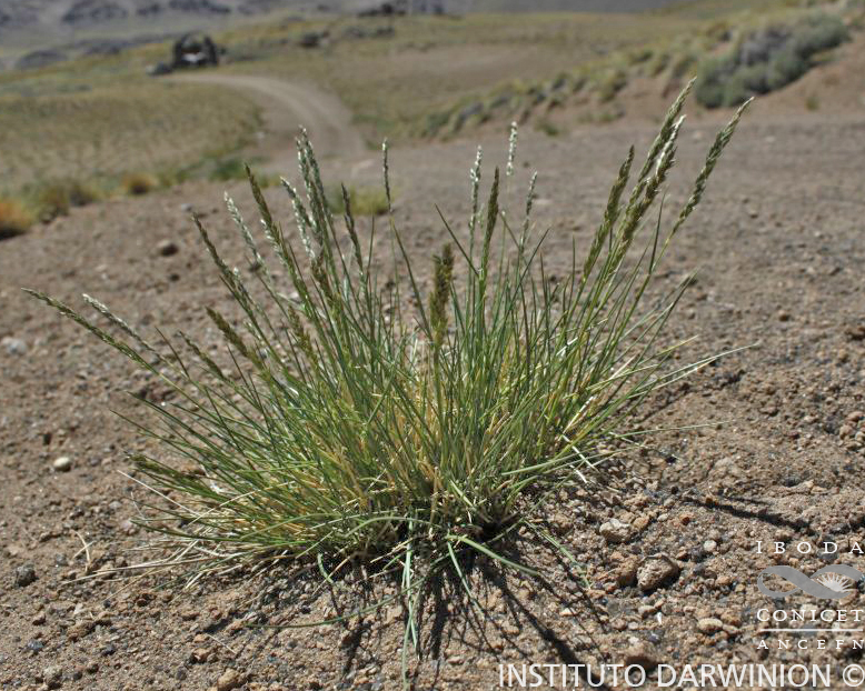 Habita en la cordillera andina de Mendoza, San Juan y norte de Neuquén, donde ha sido coleccionada en portezuelos rocosos, lomadas y laderas secas entre los 1500 y los 3800 m s.m. En muchas partes de la cordillera mendocina forma pastizales que ocupan grandes extensiones. Las plantas se presentan a menudo formando anillos o semicírculos rodeados por suelo desnudo, dando a la vegetación un aspecto muy particular. Habita también en regiones andinas de Chile.
