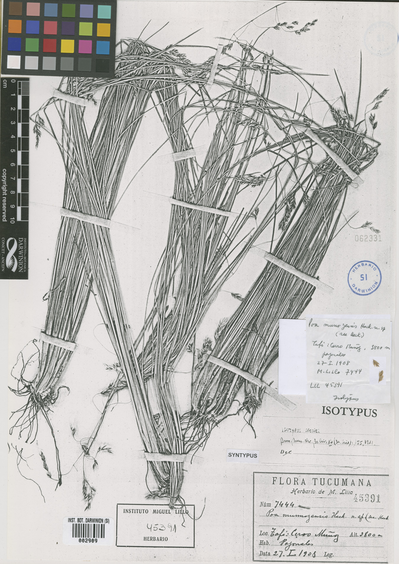 Material Tipo: Argentina. Jujuy. Santa Catalina. Región de la Puna, Timón Cruz, 3850 m s.m., F. Claren s.n., Herb. F. Kurtz 11584 (lectotipo, S!, designado por M. A. Negritto & A. M. Anton, Kurtziana 27: 366. 1999; isolectotipos, BAA!, fragmento, CORD!, US-88772!, fragmento ex S).