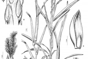 A, planta; B, detalle de la espiga; C, y D, espiguillas en vista dorsal y ventral.