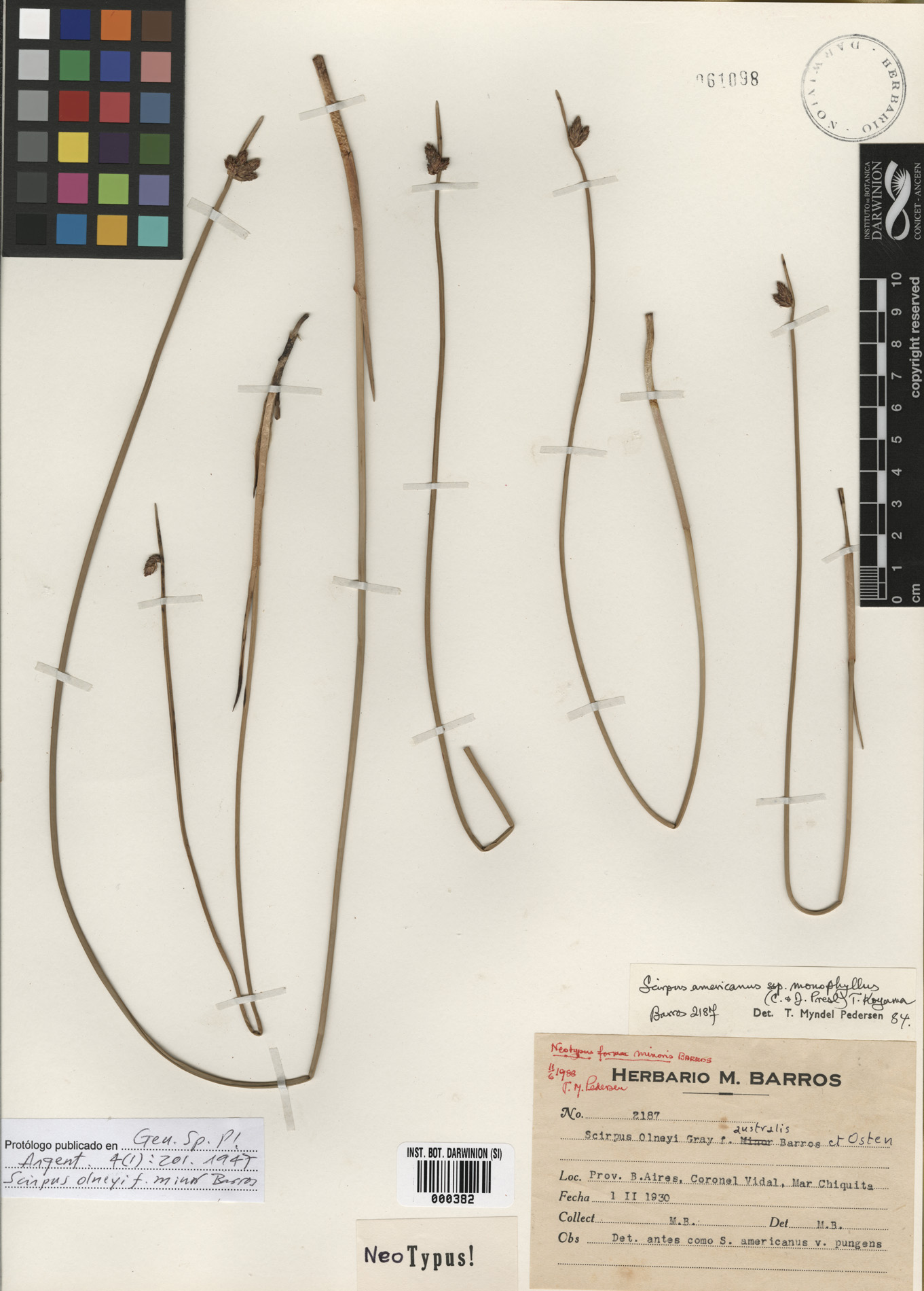Tipo de Scirpus olneyi A. Gray ex Engelm. & A. Gray f. minor Barros