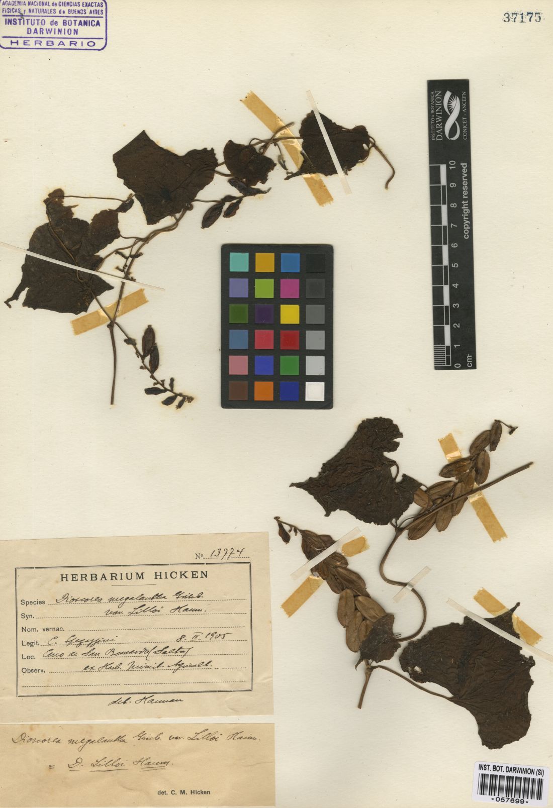 Material Tipo: Argentina. Tucumán. Zwischen Gebüschen schlingend in der subtropischen Waldung bei Juntas, Sierra de Tucuman, 21 Mar 1872, P. G. Lorentz 738 (B_10_0243963, CORD 00005709, G 00098765, GOET 003128, Foto Serie Field Mus. 10467).