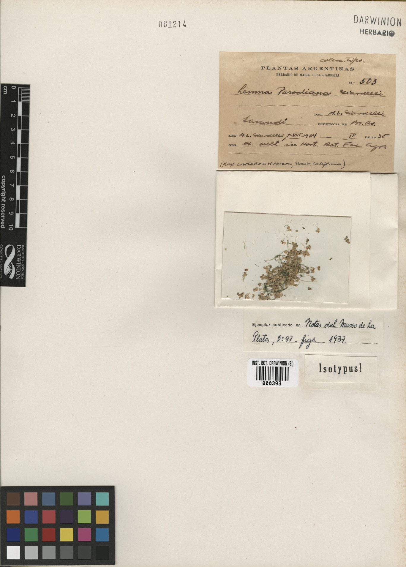 Observaciones: Lemna gibba es polimórfica en cuanto a su tamaño, gibosidad, coloración, número de semillas, etc. Giardelli (1937, 1941, 1969) diferenció, para Argentina, L. parodiana y L. disperma de L. gibba. La primera fue caracterizada por su tamaño pequeño y por manchas rojas cerca del extremo de la cara dorsal. Estas peculiaridades pueden encontrarse dentro de L. gibba en todo el mundo, y en parte dependen de las condiciones ambientales. A menudo también pueden ocurrir formas de transición. En general las Lemnáceas se reproducen vegetativamente, y forman numerosas frondes que parecen muy distintas a las restantes de la misma colonia; por lo tanto, los diferentes clones dan la impresión de ser taxas distintas. L. disperma es una especie australiana estrechamente relacionada con L. gibba, la cual no crece en Australia. Los caracteres de las dos especies, se superponen. Fuera de Australia se pueden encontrar, dentro del área de L. gibba, clones simples, con algunos caracteres de L.
