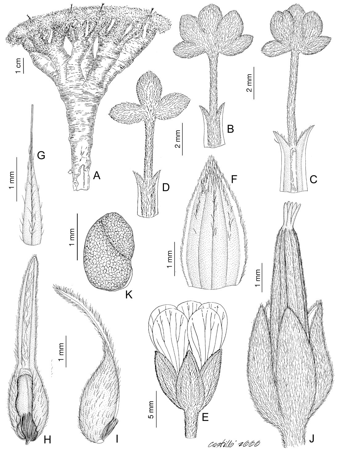 Observaciones: Especie de hábito aplicado al suelo, pulvinular y de muy corta talla, seríceo en casi todas sus partes, que no se asemeja a ninguna otra del género en la Argentina.