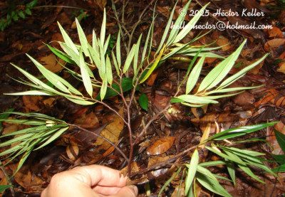 Árboles de 6-24 m de alto; ramas de 1-5 mm de diámetro, cuando jóvenes densamente áureo-pubérulas; entrenudos de 0,4-0,8 cm de largo. Hojas con pecíolos de 0,05-0,4 cm de largo, glabros a pubescentes; láminas obovado-lanceoladas, de 2-9 × 0,5-1,6 cm, ápice y base agudos y atenuados, glabras en el epifilo, esparcidamente pubescentes en el hipofilo, bordes revolutos, venas secundarias no aparentes, sólo la vena primaria conspicua. Inflorescencias en ripidios de 1-5 flores; pedúnculos pubescentes, de 0,8-2 mm de largo; pedicelos 1,5-4 mm de largo × 0,5-1 mm de diámetro basal, pubescentes; brácteas deltoides de 0,8-1,5 × 1-2 mm; capullos de las flores de 3-12 mm de largo × 3-5 mm de ancho basal, densamente áureo-seríceos a pubescentes. Flores blancas, rosadas o rojizas; cáliz con 3 sépalos libres, deltoides, de 1-1,5 × 1,5-2,5 mm, externamente pubescentes, internamente glabros; corola compuesta por 6 pétalos libres, carnosos, 3 exteriores y 3 interiores; los exteriores oval lanceolados, de 10-15 × 3-4 mm en la base, con base hastada, ápice agudo y acuminado, densamente áureo-seríceos en la cara externa, internamente glabros, los interiores obovado-lanceolados, de 8,5-9 × 2-2,5 mm en la base, de base hastada, ápice agudo acuminado, densamente áureo-seríceos en la cara externa, internamente glabros; estambres de 0,8-1 mm de largo, anteras de 0,7-0,8 mm de largo. Frutos con 3-10 carpidios, de 1-2,4 × 0,3-0,8 cm en la parte más amplia. Semillas 1-4, de 7-8 × 5 mm.