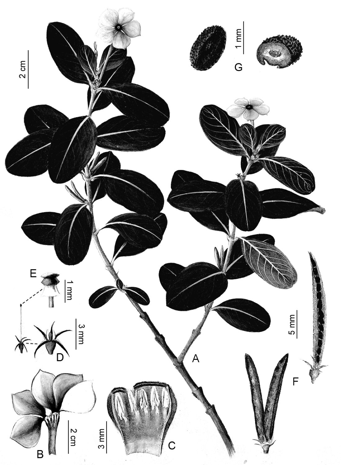 Observaciones. Esta especie se caracteriza por sus flores llamativas de color rosado intenso a blanco, y produce alcaloides (vinblastina y vincristina) que se utilizan para la quimioterapia de ciertos tipos de cáncer. Para una sinonimia más completa, consultar Codd (1963).