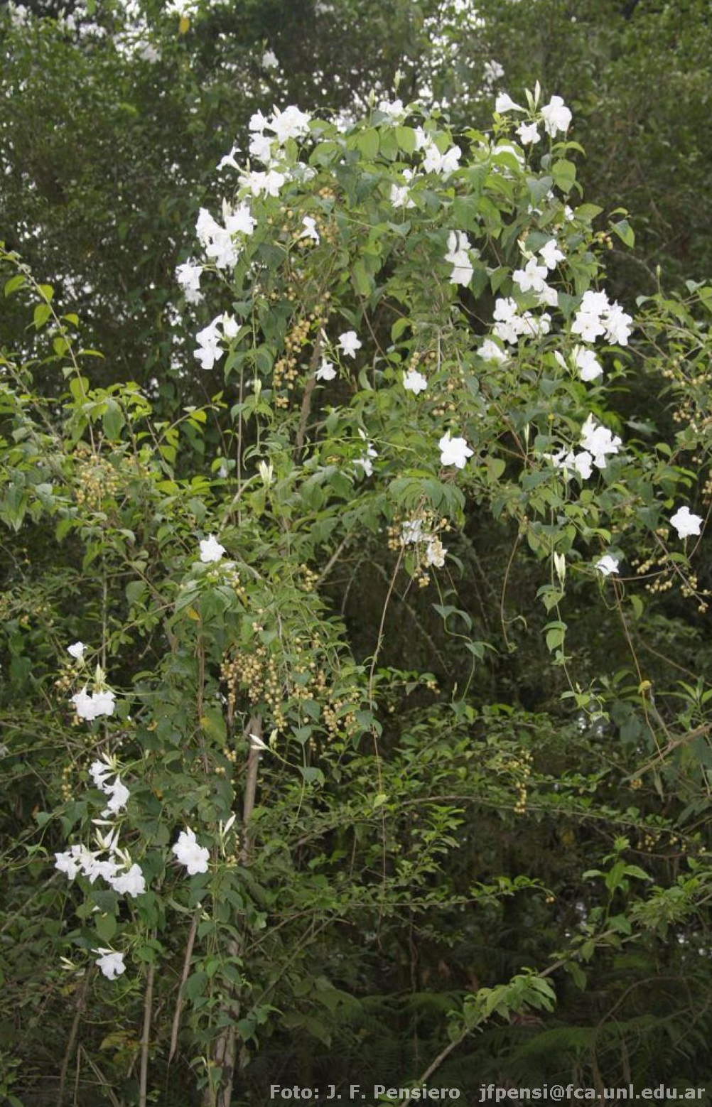 Observaciones: Nombres vulgares. “Azucena del monte”, “jazmín de Chile”, “jazmín de Jujuy”, “jazmín del campo”, “jazmín del monte”.