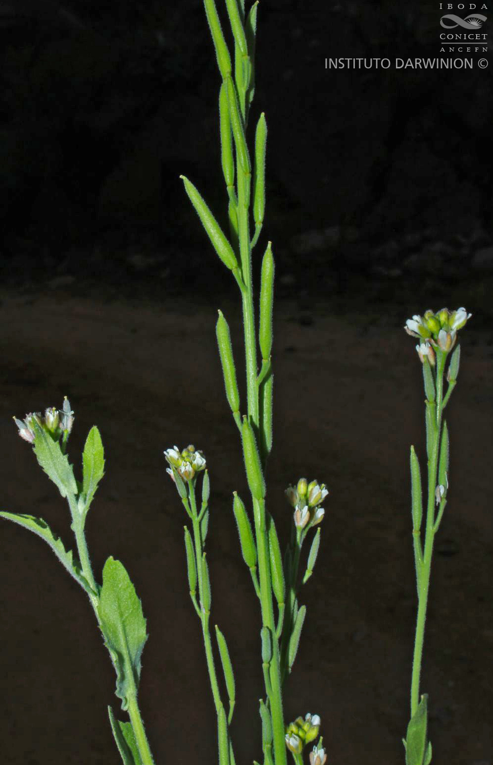 Hierbas perennes, a veces leñosas en la base, densamente pubescentes, con tricomas (2-)4-7-radiados, subsésiles o pedunculados, de 0,1-0,3 mm de largo, ocasionalmente con algunos radios en forma de espuela. Tallos erectos, a menudo solitarios desde la base, ramificados en la parte superior, de (20-)25- 100(-125) cm de alto, pubescentes, a veces sólo basalmente, con tricomas largamente pedunculados. Hojas basales no rosuladas, tempranamente marchitas; hojas caulinares sésiles, auriculadas, oblongas a lanceoladas, de 1,5-7(-9) × 0,4-1(-1,7) cm de largo, uniformemente pubescentes, denticuladas. Racimos alargados considerablemente durante la fructificación; pedicelos fructíferos ascendentes a suberectos, pubescentes, con tricomas dendríticos subsésiles, de (3-)5-12(-15) mm de largo. Sépalos oblongos, rosados, pubescentes, de 2-2,5 × 1-1,3 mm; pétalos blancos, espatulados, de 3-4,5 × 1-1,5 mm; filamentos de 2-2,5 mm de largo; anteras oblongoides, de 0,7-0,9 mm de largo; óvulos 120-190. Frutos lineares a estrechamente oblongoides, de (1,3-)1,8- 2,5 cm × 2-3 mm; valvas pubescentes, con tricomas subsésiles; estilo de 0,5-1 mm de largo. Semillas oblongoides, 2-seriadas, de 0,7-0,9 × 0,4-0,5 mm.