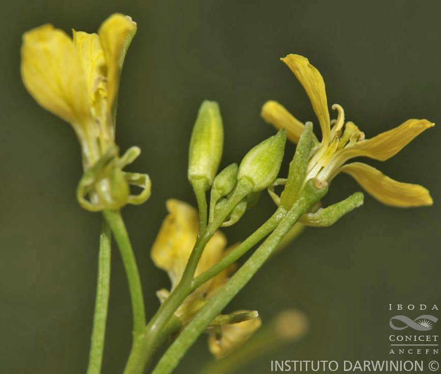 Hierbas anuales, de (20-)40-120(-160) cm de alto. Tallos erectos, ramificados en la parte superior, escasa a densamente hirsutos cerca de la base, glabros o subglabros en la parte superior. Hojas basales rosuladas; pecíolos de 1-10(-15) cm de largo; láminas ampliamente oblanceoladas, oblongas o lanceoladas, pinnatisectas, pinnatífidas o runcinadas, de (2-)5-20(-35) × (1-)2- 8(-10) cm; lóbulos laterales (3-)4-6(-8) a cada lado del nervio central, más pequeños que el lóbulo terminal, oblongos o lanceolados, enteros, dentados o lobulados. Hojas caulinares superiores con lóbulos estrechamente lineares a filiformes. Pedicelos fructíferos divaricados, rara vez ascendentes, robustos, casi tan gruesos como el fruto, de (4-)6-10(-13) mm de largo. Sépalos oblongos, cuculados, ascendentes o extendidos de 4-6 mm de largo; pétalos amarillos, espatulados, de (5-)6-8(- 10) × 2,5-4 mm, uña subigual a los sépalos; anteras oblongoides, de 1,5-2,2 mm de largo; filamentos amarillentos, erectos, de 2-6 mm de largo; óvulos 90-120. Frutos angostamente lineares, robustos, teretes, de (4,5-)6-9(-12) cm × 1-2 mm, usualmente rectos; valvas glabras, lisas; estilo subclaviforme, de 0,5-2 mm de largo; estigma prominentemente 2-lobulado; septo ligeramente engrosado. Semillas oblongoides, de 0,8-1 × 0,5-0,6 mm, insertas en las depresiones del septo.