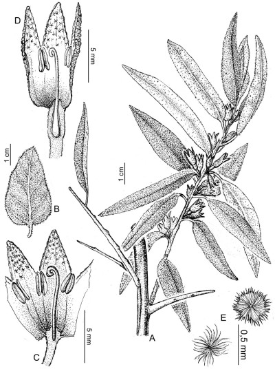 Observaciones: Nombres vernáculos y usos. “Arabia”, “olivillo”, “olivo de bohemia”, “olivo ruso”. Cultivada como ornamental en parques y como cortina contra el viento.