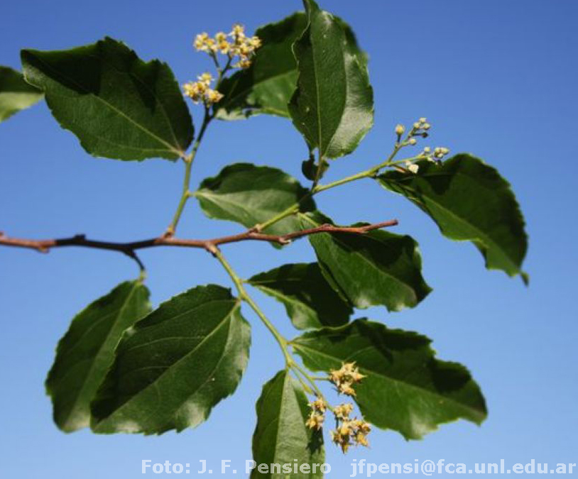 Arbustos o pequeños arbolitos, de 1-3 m de alto; ramas divaricadas, ceniciento-rojizas, con lenticelas redondas. Hojas con pecíolos de 1,8-2,8 mm de largo; láminas ovadas a ovado-oblongas, de 4,5-6,5(-10,5) × 2-3(3,8) cm, base redondeada, ápice acuminado, los márgenes glanduloso-aserrados, membranáceas, pubescentes a glabras; estípulas lanceoladas, caedizas. Panículas terminales de 2-3(-4,5) cm de largo, paucifloras; pedúnculos de 1-1,4 cm de largo, estos y el raquis pilosos; brácteas y bractéolas pequeñas. Flores pequeñas, blanquecinas; sépalos 3, ovados, de 2,8-3,1mm de largo, cortamente pilosos en ambas caras; pétalos 3, ovados, ca. 3 mm de largo; estambres numerosos, anteras pequeñas, amarillas; ovario ovoideo, glabro; estilo ca. 1 mm de largo; estigma 3-lobado. Bayas globosas, de 0,8-1,1 mm de diámetro, negruzcas, rodeadas en la base por el perianto persistente. Semillas numerosas, de contorno oblongo, de 1,3-1,6 mm de largo.