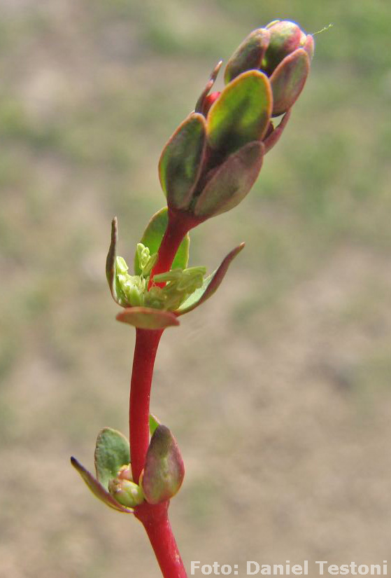 Observaciones: La transición de las hojas de laciniadas a enteras puede ser brusca o gradual (a veces existen hasta 5-10 verticilos intermedios). Existe gran variabilidad en ciertos caracteres vegetativos tales como: coloración de tallos y hojas, longitud de los entrenudos, grado de cobertura de verticilos contiguos, transición gradual o abrupta de las hojas de laciniadas a enteras, dimensiones de las hojas, número de lacinias, etc. Afín a Myriophyllum salsugineum Orchard, nativa de Australia; según Orchard (A revision of South American Myriophyllum (Haloragaceae) and its repercution on some Australian and North American species, Brunonia 4(1): 53. 1981.-), ambas entidades difieren por tener o no emergencias glandulares en la base de las hojas aéreas (presentes en M. salsugineum, ausentes en M. quitense); además, en la especie australiana las hojas son más cortas que los entrenudos y cortamente pecioladas. Sin embargo, los materiales argentinos tienen hojas con emergencias axilares (Negritto et al., Emergencias glandulares en Myriophyllum (Haloragaceae), Kurtziana 24: 120. 1995); ello, unido a la gran variabilidad de los órganos vegetativos hace sospechar que M. salsugineum sea una variante australiana de M. quitense con fruto levemente más largo. Estudios adicionales comparativos permitirán confirmar o no esta presunción.