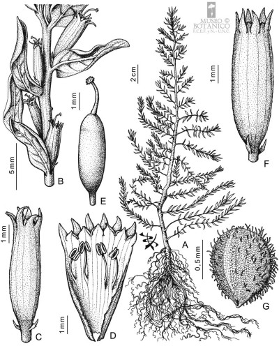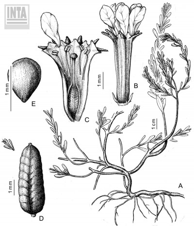 Hierbas anuales, de 0,2-1 m de alto, erectas; tallos angostamente 4-alados, glabros. Hojas alternas u opuestas; láminas lineares u oblongas, de 8-20 × 1-3 mm, glabras o ± adpreso-pubescentes en la cara adaxial, el margen y el nervio central de la cara abaxial. Flores solitarias, axilares; pedicelo ca. 0,5 mm de largo; brácteas ovadas, ca. 0,5 mm de largo, agudas; tubo floral ca. 4 mm de largo, lóbulos ovados con un apículo papiloso; apéndices intersepalinos triangular subulados, escabriúsculos; pétalos obovados, ca. 2,5 mm de largo, rosados; estambres 4, fijos en la mitad del tubo floral, anterassuborbiculares; ovario elipsoide; estilo incluso, estigma capitado, papiloso. Fruto una cápsula oblonga ca. 5 mm de largo. Semillas ovoides, de 0,6 mm de largo, reticuladas, brillantes, oscuramente reticuladas.