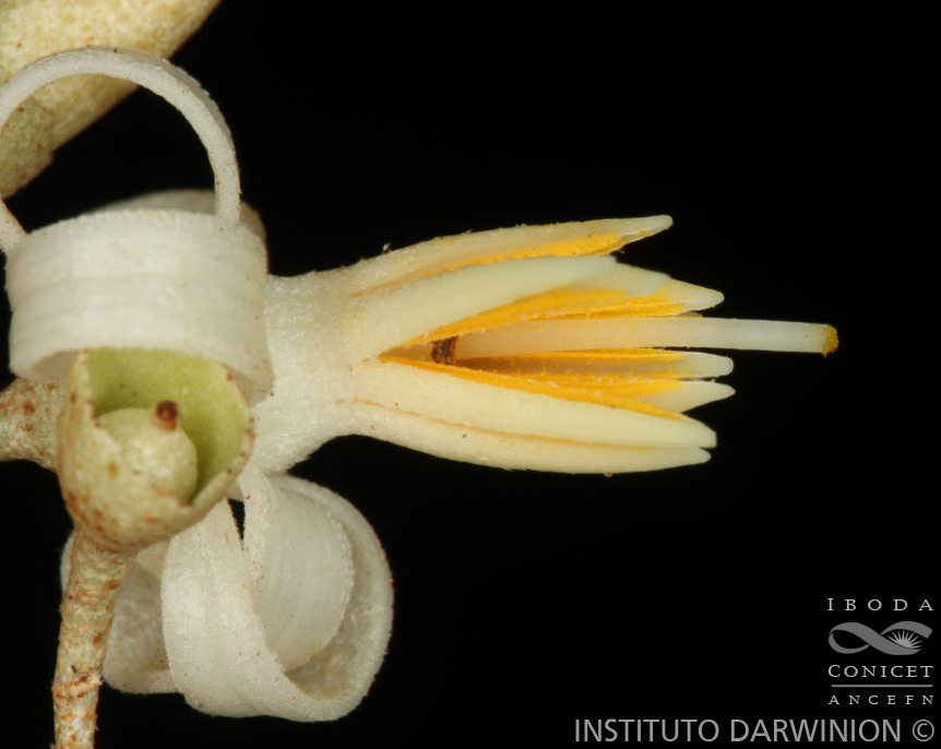 Árbol de 5-25 m de alto, las ramas jóvenes cubiertas densamente por escamas peltadas, plateadas, glabrescentes a la madurez. Hojas elíptico-lanceoladas, oblongas a obovadas, raro oblanceoladas, de 3-9 × 1,5-3,5 cm, cartáceas, discoloras, de base cuneada, ápice agudo a acuminado, cara adaxial glabra con puntos blancos, cara abaxial densamente cubierta por tricomas escamosos de 0,3-0,5 mm de diámetro, plateados y con la porción central de las escamas de color castaño; pecíolo de 6-10 mm de largo. Inflorescencia en racimos axilares de 3-6 cm de largo, hasta con 10 flores, raquis pubescente, cubierto por tricomas escamosos. Flores de 1-1,8 cm de largo, pedúnculo de 5-7 mm de largo; cáliz de 2-3,5 × 3-4 mm, cortamente 5-denticulado a inconspicuo, cubierto con tricomas escamosos, plateados, densos; corola con el tubo de 2-4 mm de largo, lóbulos lanceolados, reflejos, de 10-12 × 1-2 mm, densamente cubiertos de tricomas escamosos plateados en el exterior, en el interior a veces glabrescentes; estambres de 8-9 mm de largo, con los filamentos cubiertos en la cara ventral de tricomas barbados, en la cara dorsal con tricomas escamosos y estrellados; anteras de 5-6 mm de largo, con tricomas estrellados dispersos sobre las tecas; ovario de 2-2,5 × 1-2 mm, con indumento denso de tricomas escamosos, plateados, estilo filiforme, glabro. Fruto una drupa elipsoide u obovoide de 1-1,2 × 0,4-0,6 cm, recubierta por tricomas escamosos plateados semejantes a puntuaciones y con el cáliz persistente.