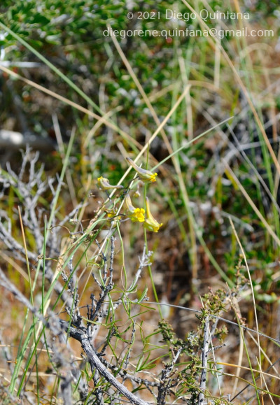 Especie endémica de la Argentina, crece en Neuquén, oeste de La Pampa, norte de Río Negro y Chubut. Se halla en ambientes de monte.