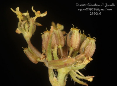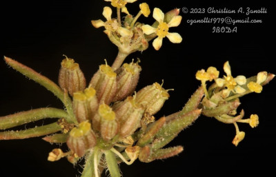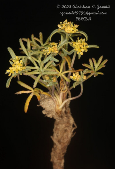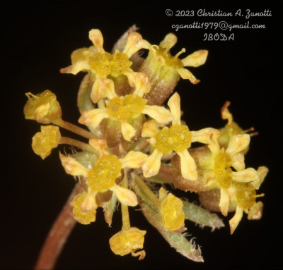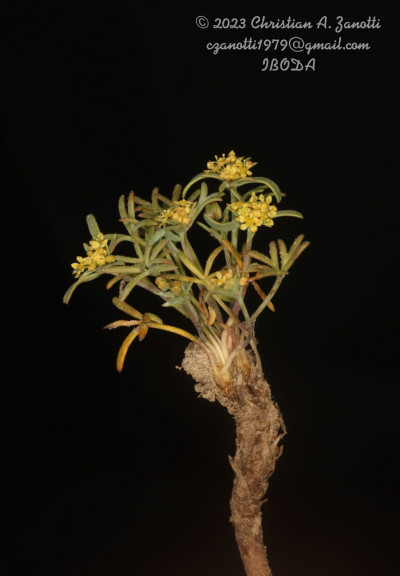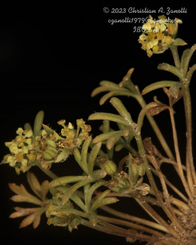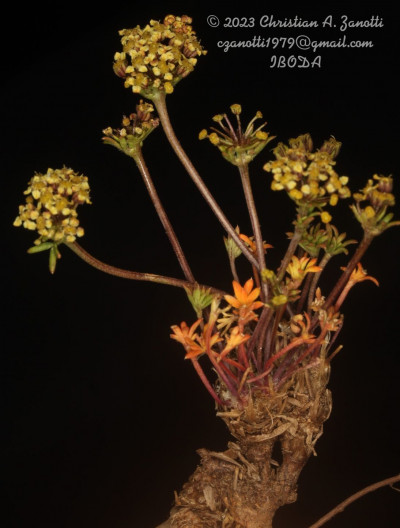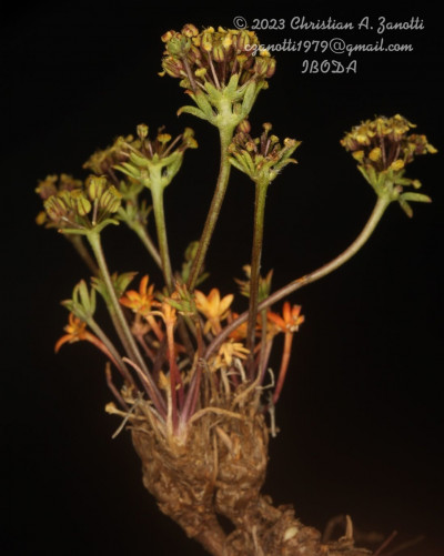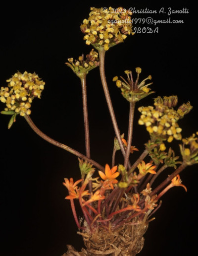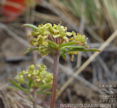 Hierbas perennes, decumbentes a erectas, de 5-30 cm de alto; tallos simples o ramificados desde la base; raíz axonomorfa. Hojas basales arrosetadas, de 10-130 mm de largo, pecioladas, cartáceas; lámina de 5-35 × 5-35 mm, orbiculares, 3-7-palmatisectas, segmentos lineares a muy angostamente elípticos, planos, enteros a profundamente lobados, glabros o hirsutos en la cara adaxial y en el margen, ápice obtuso, mucronado, no punzante; peciolos de 20-100 cm de largo; base foliar dilatada margen escarioso, conspicuamente ciliado; hojas caulinares superiores subsésiles. Umbelas 15-30-floras, generalmente agrupadas en dicasios, la terminal perfecta, las laterales estaminadas; pedúnculos de la umbela perfecta hasta de 1,5 cm de largo (a menudo sésil), los de las umbelas estaminadas de 1-3,5 cm de largo, glabros; involucro de 6-10 brácteas, de 2,5 mm de largo, libres, enteras o apenas lobadas, prominentemente ciliadas. Flores amarillas a purpúreas; cáliz reducido a dientes triangulares; pétalos oblongos a elípticos, estrechados en la base, obtusos, de 1-1,5 mm de largo; pedicelos de 3-7 mm, glabros, subiguales. Frutos subalados, de contorno ovado, de 2,5-3 × 1,5-2 mm, comprimidos dorsalmente. Carpóforo cortamente 2-fido en el ápice.