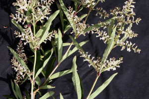 Arbustos de 1-3 m de alto, aromáticos; ramas glabrescentes con la edad, algo péndulas. Hojas ternadas, pecíolo breve, de 1- 5 mm de largo; láminas elípticas, de 2-8 x 1-2,5 cm, base aguda atenuada, ápice agudo, margen entero, en ocasiones ligeramente aserrado, pubescencia escabrosa en la cara adaxial, subglabra en la abaxial, con pelos glandulares subsésiles, nervaduras prominentes. Sinflorescencias en pleiobotrios heterotéticos, formadas por racimos espiciformes laxos, de 1-5 cm de largo, agrupados en amplias panojas terminales y/o axilares. Flores pequeñas; brácteas florales reducidas, ovadas, de 1-1,5 mm de largo, subglabras ligeramente híspidas sobre la vena media; cáliz de 2,5-3 mm de largo, densamente tomentoso, dientes breves, subiguales, triangulares; corola blanca de 5-6 mm de largo, fauce villosa, tomentoso-glandulosa en exterior, estambres inclusos con el conectivo apiculado. Clusas de 2 x 1 mm, glabras o pubescentes en la región apical.