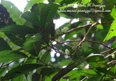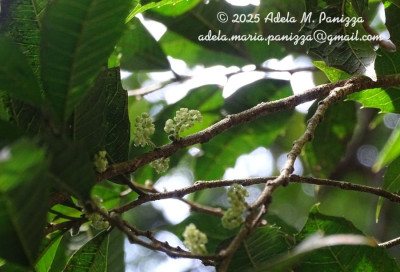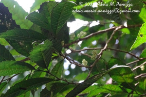 Arbustos o árboles de 4-9 m de alto; ramas glabrescentes, conspicuamente lenticeladas. Hojas con pecíolo de 3-10 mm de largo; láminas elíptico-oblongas, de 6-20 × 2-5,5 cm, subcoriáceas, base aguda a obtusa, ápice acuminado, espinuloso, margen espinuloso-dentado, glabras y generalmente lustrosas en la cara adaxial, escasamente pubérulas a glabras en la cara abaxial; estípulas de 3,5-9 mm de largo, caducas. Infl orescencias estaminadas en racimos de 4-12 cm de largo, geminadas o solitarias, axilares; pedúnculos de 2-15 mm de largo, densamente pubérulos; brácteas interflorales de 0,6-1,8 mm de diámetro, subpeltadas. Flores estaminadas con pedicelos de 1-3,5 mm de largo; tépalos de 2 mm de largo, desiguales; estambres con filamentos de 0,4-0,7 mm de largo, connados en la base, anteras de 0,7-1 mm de largo. Inflorescencias pistiladas en racimos de 3-8 cm de largo; pedúnculo de 3-20 mm de largo, pubérulo; brácteas suborbiculares o claviformes, de 0,6-1,8 mm de diámetro. Flores pistiladas 5-15, subsésiles a pediceladas; perianto 4-lobado, pubérulo; ovario libre dentro del perianto; estigma de 1-2 mm de largo, recurvado. Fruto globoso de 1 cm de diámetro, liso y glabro, tornándose negro a la madurez. Semillas de 4-6 mm de ancho.