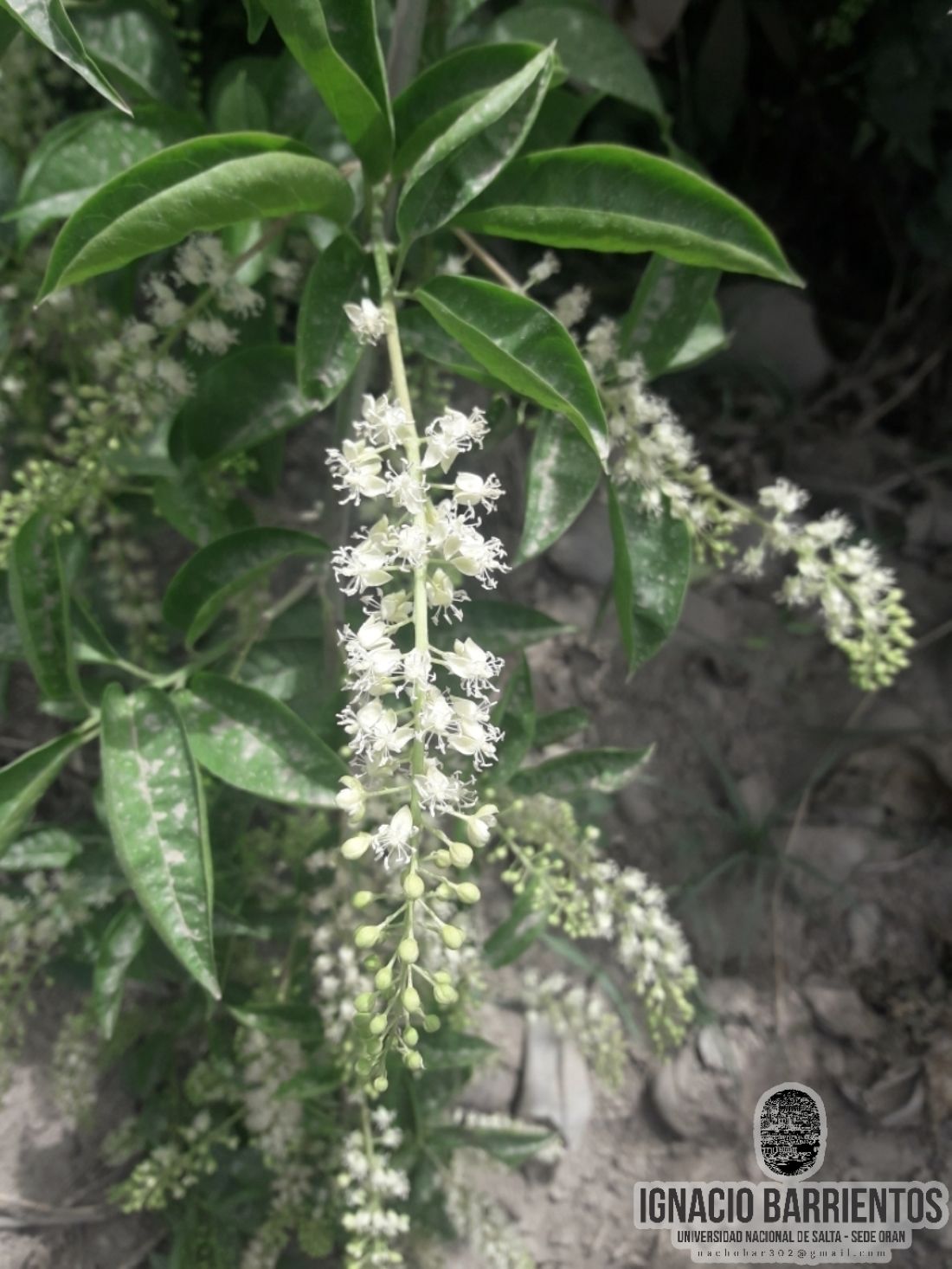 Arbusto apoyante, trepador hasta de 10(-20) m de alto, con ramas decumbentes. Hojas con pecíolos de 0,5-3 cm de largo, rojizos; láminas de 2,5-13 × 1,5-6 cm. Inflorescencias de 2-10 cm de largo, generalmente axilares; pedúnculo de 1,5-6 cm de largo. Flores con pedicelos de 3-7(-10) mm de largo; bráctea de 1-3 mm de largo; bractéolas de 0,4-0,5 mm de largo; tépalos de 2,5-4 × 1,5-2,5 mm; estambres 8-10 con los filamentos de 2-3 mm de largo, anteras de 1,5-2 mm de largo; estilo ausente. Fruto de 4,5-6 mm de diámetro, carmín a negro. Semilla de 4-5 mm de largo, negras.