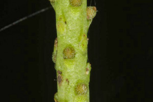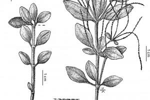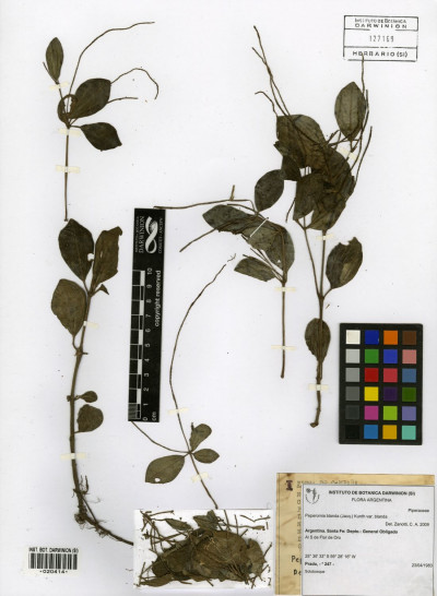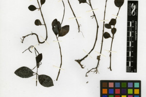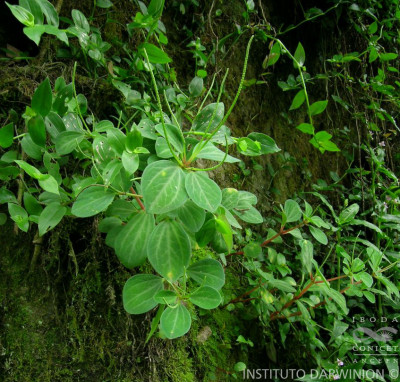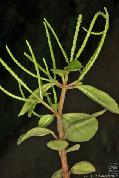 Hierbas terrestres o epífitas, erectas, de 15-45 cm de alto; tallos radicantes en la base y en los nudos inferiores, con entrenudos de 1,5-6 cm de largo, glabrescentes a densamente pubescentes. Hojas basales opuestas y apicales en verticilos de 3 a 4, con pecíolos de 0,5-1 cm de largo; láminas elíptico-obovadas a rómbico-obovadas, de 2,5-5(-9) × 1,5-3(-5) cm, base y ápice obtusos a agudos, cartáceas, palmati-3-nervadas, cilioladas, glabrescentes a densamente pubescentes. Inflorescencias terminales y axilares, opuestas o en verticilos de 3-5, espigas filiformes de 6-15 cm de largo, laxifloras; pedúnculos de 1-2,5 cm de largo; brácteas florales orbiculares. Frutos ovoides, de 0,6-0,8 mm de largo, sésiles, de superficie verrucosa, estigma subapical.