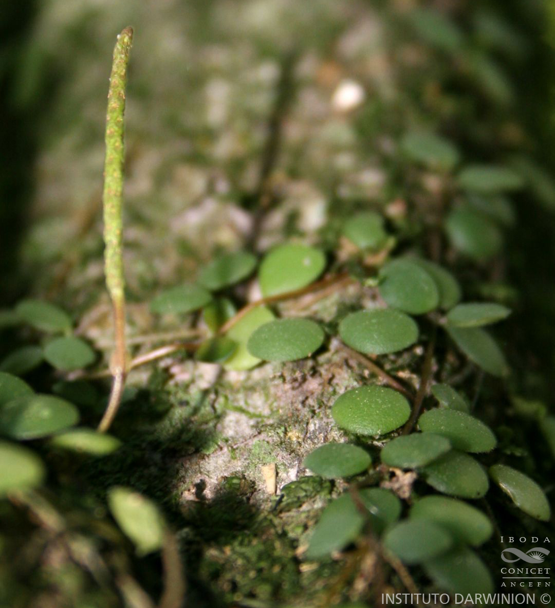 Hierbas epífitas, rastreras, delicadas; tallos filiformes, radicantes en los nudos, glabros o con diminutos pelos crespos esparcidos, entrenudos de 1-2 cm de largo. Hojas opuestas, con pecíolos de 0,5-1 mm de largo; láminas orbiculares, de 4-6 mm de diámetro, base y ápice redondeados, membranáceas, palmati-3- nervadas, pilosas, con pelos crespos o glabrescentes en ambas caras, cilioladas o no. Inflorescencias solitarias y terminales, espigas filiformes de 1-2,5 cm de largo; pedúnculos de 0,5-1 cm de largo, con 2 brácteas pedunculares opuestas en la zona media, elípticas, pilosas, cilioladas, de 0,1 cm de diámetro; brácteas florales orbiculares. Frutos ovoides, de 0,8-1 mm de largo, de superficie lisa, sésiles o estipitados, con estigma apical..