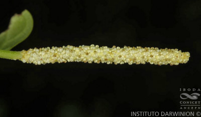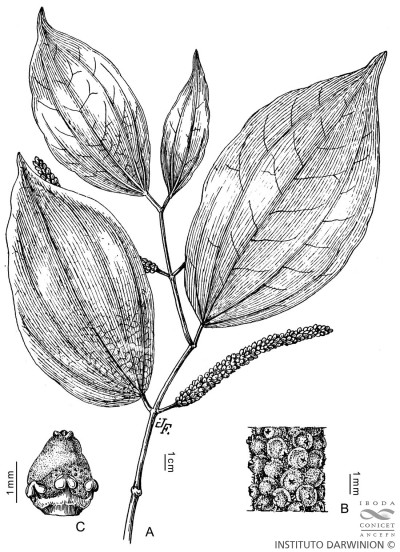 Arbustos o arbolitos de 1-4(-6) m de alto; tallos con entrenudos de 4-10 cm de largo, glabros a esparcidamente pilosos, con pelos diminutos. Hojas con pecíolos de 0,5-4 cm de largo, canaliculados, glabros o esparcidamente pilosos con pelos diminutos; láminas elípticas a ovado-lanceoladas, de 5-13 × 3-8 cm, base obtusa, ápice con acumen breve, margen ligeramente revoluto, cartáceas, palmatinervadas, superficie adaxial lisa, glabra, superficie abaxial lisa, glabra a esparcidamente pilosa, con pelos diminutos sobre los nervios. Inflorescencias con espigas de 3,5-7 cm de largo, erectas a ligeramente curvadas; pedúnculos de 0,6-1,5 cm de largo, glabros o esparcidamente pilosos, con pelos diminutos. Frutos ovoides, de 1,5-2 mm de largo, lisos, negros, esparcidamente pilosos en la base.