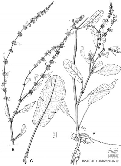Observaciones: Esta especie es afín a Rumex paraguayensis D. Parodi, distinguiéndose ésta última principalmente por sus tépalos internos hasta de 3,7 mm a la madurez.
