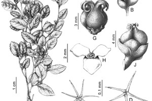 Arbustos monoicos de 30-70 cm de alto, leñosos; troncos hasta de 1 cm de ancho en la base, ramificados dicotómicamente, densamente cubiertos de tricomas estrellados y simples, los de las ramas retrorsos. Hojas con pecíolos de 3-6 mm de largo; estípulas subuladas; láminas elípticas a ovadas, de (2-)2,5-5 × 1,3-2,6(-3) cm, obtusas o agudas, base aguda irregularmente crenado-dentada, ambas caras cubiertas de tricomas estrellados, cara abaxial más clara, con pubescencia más densa y nervaduras prominentes cubiertas de tricomas simples, base 3-nervada y 2-glandulosa. Inflorescencias estaminadas axilares, breves (no excediendo la mitad del largo de la hoja axilante); pedúnculo de 0,5-2 cm de largo, con 4-7 brácteas cupuliformes, de 2-2,5 mm de largo, acuminadas, truncadas o 3-lobadas, densamente pilosas, cada una conteniendo (3-)8(-10) flores; inflorescencias pistiladas terminales, 4-5-floras, flores sésiles, brácteas rígidas, ovadas, de 3-4 mm de largo, carinadas, agudas, pubescentes, ciliadas. Flores estaminadas con 3-4 sépalos ovales ca. 1 mm de largo, agudos, pilosos exteriormente; estambres 7-9 con filamentos engrosados en la base; disco nectarífero formado por glándulas pequeñas, peltadas. Flores pistiladas con 5 sépalos ovales, agudos, ca. 2 mm de largo, ciliados; disco nectarífero pequeño, 3-glandular, irregularmente lobulado; ovario seríceo, estilos 2-fidos. Fruto ca. 7 mm de largo, piloso. Semillas subtetraédricas, de 5 mm de largo, lisas, grisáceas, marmoreadas.
