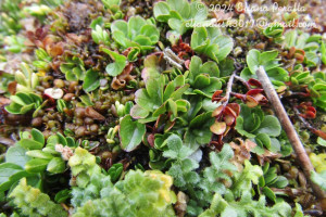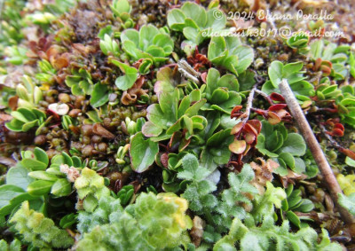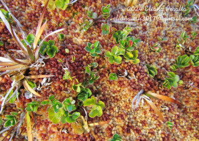 Hierbas perennes, hasta de 10 cm de alto, dioicas; rizoma estolonífero; lepidofi los ovados hasta de 9 × 4 mm, el margen entero, pardos. Hojas con pecíolos de 0,5-6,5 cm largo × 0,5-1 mm de diámetro, glabrescentes hasta densamente pubescentes, púrpureo -oscur os; lámina de contorno orbicular-reniforme, de 1,5 × 2 cm, (5-)7-8 lobuladas y a su vez, 1 a 3 sublobuladas, éstos sublóbulos parcialmente superpuestos y formando senos agudos, ápice redondeado, emarginado, papiloso, cara adaxial lisa, glabra o raramente con escasos tricomas a lo largo del margen entero, cara abaxial glabra, con las venas a veces pubescentes. Infl orescencia estaminada hasta de 5 cm largo; escapo hasta de 4 cm largo. Flores estaminadas con la base de los sépalos deltoides, ca. 1 mm de largo, persistentes; pétalos reducidos, ca. 0,5 mm largo, crasos; estambres 2, filamentos hasta de 5 mm largo, anteras elipsoides, de 1,2-1,5 × 0,75-1 mm, apiculadas. Flores pistiladas con sépalos y pétalos semejantes a las estaminadas; ovario subovoide, de 1,8-2 × 1,6 mm, a veces algo comprimido. Fruto ovoideo-elipsoidal.