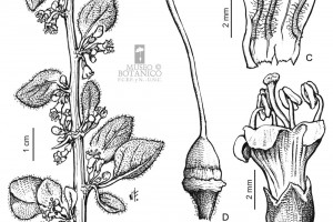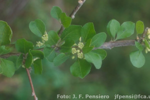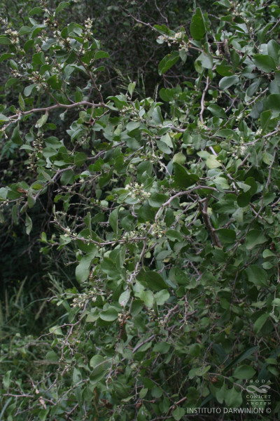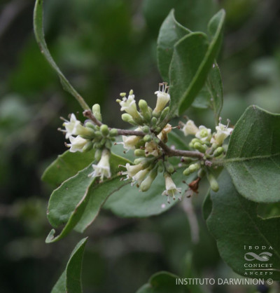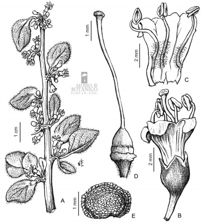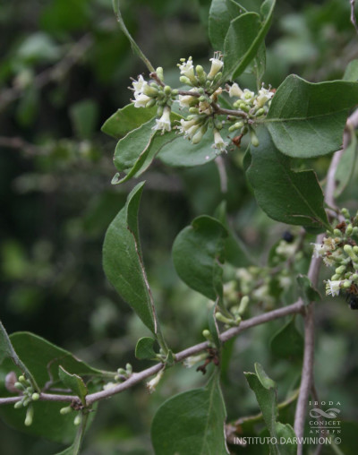 Arbustos o arbolitos de 1-4(-10) m de alto; tallos amarillogrisáceos o castaños, ramificados, con ramas arqueadas a veces llegando al suelo, densamente pubescente a glabrescente, con pelos simples y varias veces ramificados, en la madurez más glabros, con espinas finas de 2-23 mm. Hojas planas, membranáceas; láminas ovadas, elípticas, suborbiculares u obovadas, de 4-40 × 3-32 mm, pilosas en ambas caras con pubescencia variable, con pelos ramificados en su mayoría, también simples y algunos glandulares. Flores 4-meras, 3 a 20 por braquiblasto; cáliz acopado, con lóbulos más cortos que el tubo, pubescente o a veces glabrescente, 4-dentado, raro 5-dentado o bilabiado, tubo de 1-2 mm, lóbulos subtriangulares de 0,5-1 mm; corola infundibuliforme, blanca o amarillo-cremosa, a veces con manchas verdosas o violáceas en la base de los lóbulos, glabra externamente, por excepción con un anillo piloso en su tercio basal, siempre pubescente en su interior en la zona de inserción de los estambres, tubo de 3-5 × 2-4 mm, lóbulos de 1,5-2 × 1,5-2 mm, revolutos en antesis; estambres adheridos al tubo corolino en su tercio basal, filamentos subiguales, exertos, muy pubescentes en su base; ovario con nectario basal conspicuo, rojo-anaranjado, que ocupa un tercio de su longitud, estilo muy exerto. Baya atropurpúrea, casi negra, subglobosa, de 3-4 × 3,5- 4 mm; semillas reniformes, de 2-2,5 × 1,5-2 mm, 3-6 por lóculo; episperma con celdillas onduladas, poco marcadas o casi lisas.
