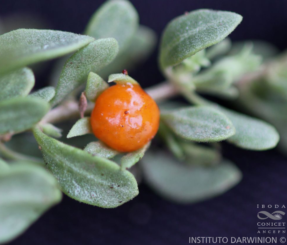 Arbustos de 0,7-2,5 m de alto; tallos castaño-oscuros o grisáceos, pubescentes cuando jóvenes, luego glabros, con braquiblastos marcados, ramificados, con ramas espiniformes por lo general perpendiculares a la rama que las soporta. Hojas planas; láminas filiformes, linear-obovadas o lineares, de 2,5- 30(-40) × 0,5-3(-5) mm, atenuadas en la base, generalmente obtusas en el ápice, membranáceas, glabras, glabrescentes o pubescentes, con tricomas simples y glandulares. Flores 5-meras, raro 6-meras, solitarias, con frecuencia arqueadas; cáliz tubuloso 5-6-dentado, con dientes irregulares, más largos, iguales o más cortos que el tubo, glabro a pubescente con pelos simples y glandulares, tubo de 1,8-3 mm, lóbulos angostamente subtriangulares, de 1-3 mm, agudos o acuminados; corola violácea o lilacina, con la parte interna del tubo más oscura y nervaduras atropurpúreas en los lóbulos y en el tubo, glabra externamente, más raro pubescente, pilosa en su interior formando un anillo en la zona de inserción de los estambres y por debajo de ella, más densamente en los hacecillos estaminales, tubulosa, ensanchándose en forma suave hacia el ápice y un poco contraída por encima del ovario, tubo de 8-10(-12,5) × 2-3 mm, lóbulos subtriangulares de 2-3 × 1,5-2,3 mm; estambres adheridos al tubo corolino a distinto nivel, más arriba de su hemialtura, filamentos desiguales, generalmente 2 más largos que llegan hasta el nacimiento de los lóbulos y son apenas exertos y los 3 restantes más cortos e incluidos, con pelos esparcidos en su base; ovario con nectario verde e inconspicuo, estilo exerto. Baya ovoide, roja, atropurpúrea o anaranjada, de 4-6 × 3-4 mm; semillas reniformes, 8 a 15 por lóculo; episperma con celdillas de paredes onduladas, muy marcadas. Lycium