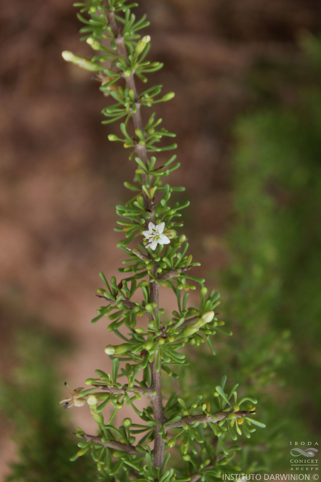 Arbustos halófilos de 0,6-1,8 m de alto; tallos castaño-claros, con espinas hasta de 35 mm, glabros, ramificados, con abundantes ramas espiniformes rígidas. Hojas carnosas, cilindráceas a levemente aplanadas, de sección circular o elíptica, con la nervadura principal inmersa, glabras o con algunos pelos glandulares esparcidos; láminas lineares o linear-obovadas, de 2-15 × 0, 5- 1,5(-2) mm, atenuadas en la base, normalmente obtusas en el ápice, solitarias, por lo general arrugadas cuando secas. Flores 5-meras, raro 6-meras; cáliz acopado, glabro, con algunos pelos simples en el ápice de los lóbulos y en el margen, 2-3-labiado y zigomorfo o bien 4-5-dentado y actinomorfo, con lóbulos más chicos que el tubo; tubo de 2-4 mm, lóbulos subtriangulares de 0,5-2 mm; corola lilacina o blanquecina, a veces con nervaduras atropurpúreas en el haz de los lóbulos y hacia dentro del tubo, angostamente infundibuliforme, glabra en su exterior, pilosa en su interior, formando un anillo pubescente en la zona de inserción estaminal, tubo de 5-10 × 2-3 mm, lóbulos elípticos de 2,2-4 × 2-3 mm; estambres adheridos al tubo corolino más arriba de su hemialtura, filamentos subiguales, muy exertos, levemente geniculados y pubescentes en su base; ovario con nectario basal inconspicuo y verde, estilo muy exerto. Baya roja o atropurpúrea, subglobosa, de 4-5 × 3-4 mm; semillas reniformes o poliédricas, 3 a 15 por lóculo; episperma con celdillas de paredes onduladas, marcadas.