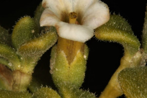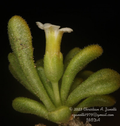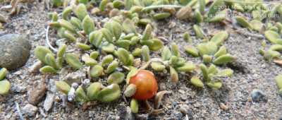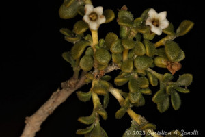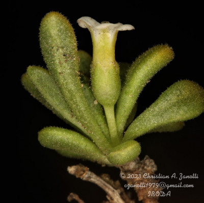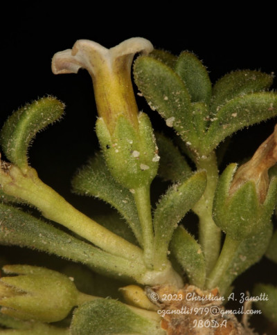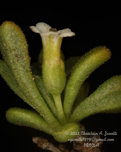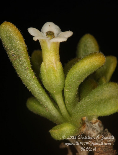 Arbustos enanos, postrados o ascendentes, hasta de 25 cm de alto; tallos amarillo-grisáceos o castaño-oscuros, inermes, ramificados, con ramas subterráneas estoloníferas, pubescentes cuando jóvenes, con pelos ramificados y simples, tardíamente glabros. Hojas solitarias o fasciculadas; láminas espatuladas u obovadas, de 2-27 × 1-5 mm, gradualmente atenuadas en la base, carnósulas, pubescentes (con pelos simples, ramificados y glandulares), glabrescentes o glabras, por lo general con cilias en el borde. Flores 5-meras, solitarias; cáliz tubuloso, a veces algo acampanado, 5-dentado, con dientes por lo común subiguales, a veces desiguales, siempre más cortos que el tubo, glabro o densamente pubescente, tubo de 2-3,5 mm, lóbulos de 1-2 mm, ciliados en el borde; corola blanca o rosada, con manchas pardo- rojizas o violáceas en el interior del tubo, infundibuliforme, glabra a muy pubescente en su exterior, casi siempre glabérrima en su interior, por excepción de unos pocos pelos simples esparcidos, tubo de 5-8(-9) × 3-5 mm, lóbulos ovales de 2-3,5 × 2-3 mm, ciliados en el borde, desplegados a levemente revolutos en antesis; estambres adheridos al tubo corolino en su tercio medio, filamentos subiguales, poco exertos, glabérrimos; ovario con nectario rojo-anaranjado, prominente. Baya subglobosa, anaranjada, ca. 8 × 10 mm; semillas 11 a 15 por lóculo, irregulares, poliédricas, de 2,5-3,5 × 2-2,5 mm; episperma liso o con celdillas de paredes onduladas, más o menos marcadas.