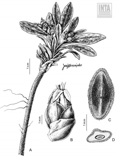 Hierbas perennes, hasta de 0,1 m de alto; raíz primaria engrosada hasta de 7 cm de largo. Hojas arrosetadas, alternas; láminas generalmente oblongas, en ocasiones elípticas, de 1,2-8 × 0,3-3 cm, glabras, ápice obtuso, base subvaginante, margen entero, glabro. Espigas ovoides, paucifloras, con 3-7 flores; escapos erectos, de 0,5-6,8 cm de largo, teretes, pilosos. Flores en la axila de una bráctea ovada, de 2-4 mm de largo, ápice acuminado o bien obtuso; cáliz con sépalos connados sólo en la base, elípticos, de 2-3,6 mm de largo, margen piloso; corola con el tubo glabro, lóbulos de 1-2 mm de largo, angostamente ovados, con margen frecuentemente involuto; estambres 4, exertos. Pixidio 4-seminado, ovoide a elipsoide, de 1-3,8 mm de largo. Semillas elipsoides, de 2-4 mm de largo, testa rugosa y opaca.