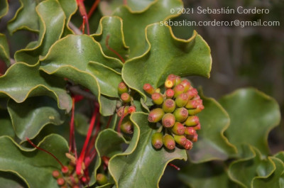 Esta especie ha sido coleccionada como hemiparásita sobre los siguientes huéspedes: Fuchsia magellanica, Populus sp., Maytenus boaria, Aristotelia chilensis (A. maqui), Azara microphylla, Berberis sp., Nothofagus dombeyi, Colletia spinosissima, etc.