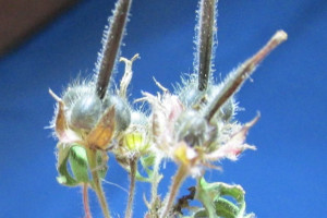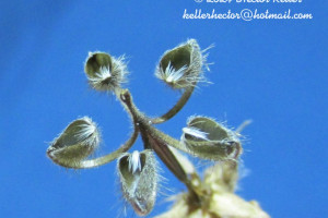 Hierbas anuales, de (7-)15-69 cm de alto; tallo erecto, foliado, con tricomas tectores. Hojas basales en roseta, las caulinares opuestas (raramente alternas cerca de la base); láminas de contorno poligonal, de (2,4-)2,7-3,5(-8) × 2,5-5,4 cm, profundamente palmatífidas, segmentos 5-7, el central rómbico, 3-9-lobados en el ápice, base cordada, con tricomas tectores (a veces también glandulíferos); estípulas lanceoladas, de 3,4-9,7 × 1-3 mm. Infl orescencia en cima monocasial; címulas 2-floras, solitarias; pedúnculos de 6-50 mm de largo, con tricomas tectores, a veces solo con tricomas glandulíferos; pedicelos de 6-13 mm de largo, con tricomas tectores y, generalmente, glandulíferos. Flores con sépalos lanceolados, de (4,2-)4,6-5,8(-7,1) mm de largo, con un mucrón de 0,8-2 mm de largo, con tricomas tectores y glandulíferos; pétalos de (2,9-)3,8-5,2(-5,8) × 1,7-2,8 mm, de ápice emarginado, sin uña, purpúreos, ciliados en la base; estambres 10, ambos verticilos con anteras purpúreas; nectarios glabros. Fruto tipo “lanzamiento de semilla”, de 15,1-18,5 mm de largo; mericarpos de 2,3-2,9 mm de largo, lisos, de base no estrechada en un pico, con una prolongación triangular en la base, sin callo, con tricomas tectores y, a veces, glandulíferos; rostro con una zona apical estrechada. Semillas reticuladas, glabras.