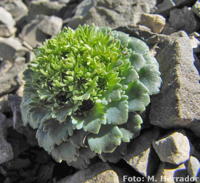 Hierbas caméfitas pulvinadas, glutinosas, de 1-8 cm de alto. Hojas densamente rosulado-imbricadas, coriáceas; lámina de contorno suborbicular a obovada, la base atenuada en un pecíolo rectangular, 5-7-palmatilobada (lámina entera en los catáfilos). Tirsoide terminal condensado, sésil, rodeado por las hojas superiores. Grupos cimosos 2-12-floros, bráctea tectriz palmada, 3-5-lobada, profilos libres, involucelados. Involucro indiferenciado. Flores solitarias bracteadas, brácteas lanceoladas, de 0,5 mm de largo. Flor central terminal desarrollada. Sépalos triangular-lanceolados, de 0,5 mm de largo. Tubo estaminalcorolino de 1 mm de largo, tubo corolino de 2,5 mm de largo, lóbulos corolinos de 1,2-1,5 mm de largo. Tubo estaminal de 2,83 mm de largo, filamentos de 0,2 mm de largo, anteras oblongas, tecas de base redondeada, conectivo no extendido por debajo de la base de las tecas. Cipselas cilíndricas a prismáticas, lisas, con carenas reducidas, sépalos reducidos, apículo grueso.