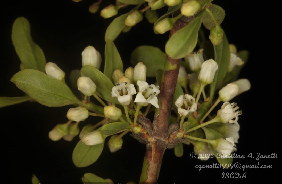 Árboles hasta de 8 m de alto o arbustos erectos, achaparrados, decumbentes o tendidos sobre el suelo formando carpetas leñosas, frondosos, más o menos espinosos, a veces inermes; tallos adultos con corteza resquebradiza, blanquecina; tallos jóvenes teretes, pubescentes o glabros; espinas 1-nodales. Hojas fasciculadas sobre braquiblastos; pecíolos de 0,5-1 mm de largo; láminas elípticas o elíptico-ovadas, a veces ligeramente espatuladas, de 0,5-4,5 cm de largo, el margen aserrado o crenado, retinervada, generalmente pubescente en ambas caras; estípulas de 1-3 mm de largo. Flores (3-)4-5(6)-meras, solitarias o en cimas (2-)3(-4)-floras, blancas; tubo urceolado-campanulado de 1,5-2,5 mm de largo, relación longitud-diámetro de 0,5-1,5; dientes del cáliz de igual o menor longitud que el tubo, reflexos; tubo y dientes del cáliz exteriormente pubescentes o glabros; corola ausente; estambres con filamentos de 0,8-1,2 mm de largo, anteras de 0,6-0,9 mm de largo; ovario pubescente, estilo de 1-2,5 mm de largo. Fruto de 3-4 mm de diámetro. Semillas de 2-3 mm de largo.