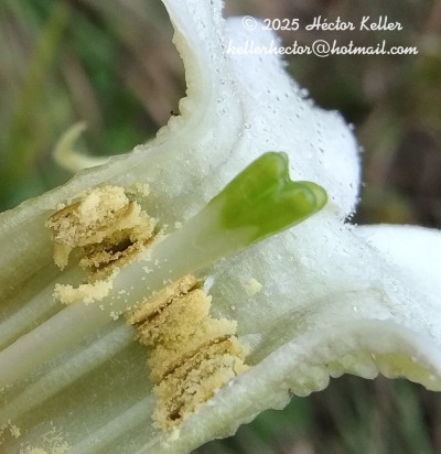 Geófitas, con rizomas horizontales que producen una hoja y una flor por nudo, o con cortos rizomas verticales; tallos aéreos inexistentes. Hojas glabras, enteras o subenteras; pecíolos hasta de 13 cm; láminas ovadas, de 7-21 × 4-10 cm, con márgenes denticulados. Flores solitarias, erectas o inclinadas; pedicelos verdosos o lilacinos, hasta de 17 cm; cáliz glabrescente, verde oscuro, de 6-10 mm; corola glabra por fuera, de (5,5-)6,8-10(-12) cm, tubo cilíndrico y largo con el cuarto superior infundibuliforme, blanquecino o amarillo-verdoso por fuera, por dentro con tricomas glandulares largos (pie 4-6-celular y cabeza 1-celular) en su extremo superior hasta casi la mitad inferior de los lóbulos, lóbulos triangular-cuspidados, a veces curvados, verdosos, con márgenes blancos por fuera e íntegramente blancos por dentro; estambres casi íntegramente soldados a la corola, la porción terminal de los filamentos ensanchada y con ápice filiforme y reflexo; gineceo con estilo de longitud variable y, en consecuencia, el estigma resulta exerto, o llega a la altura de la fauce, o es incluso. Baya verdosa, de 2-3 cm de diámetro; semillas de 3-3,5 × 2,8-3,2 mm.